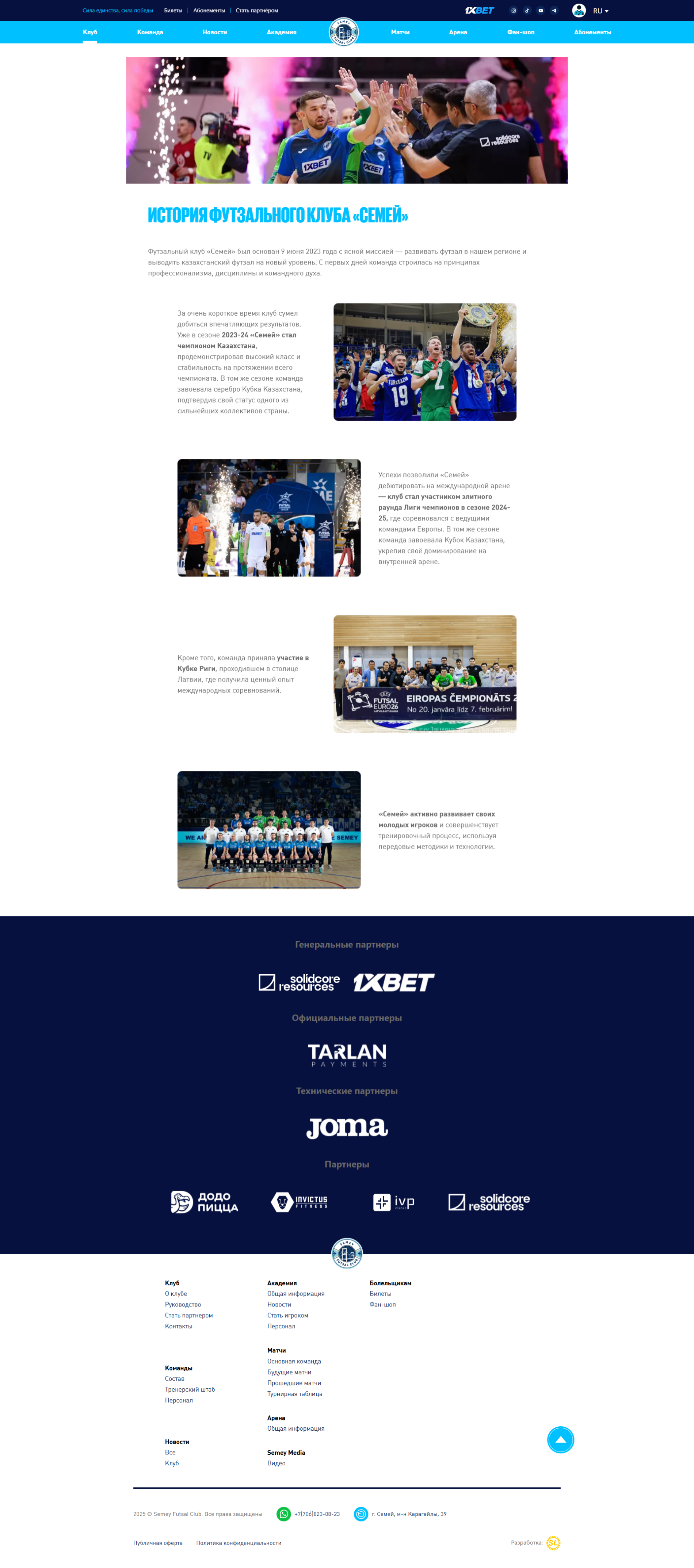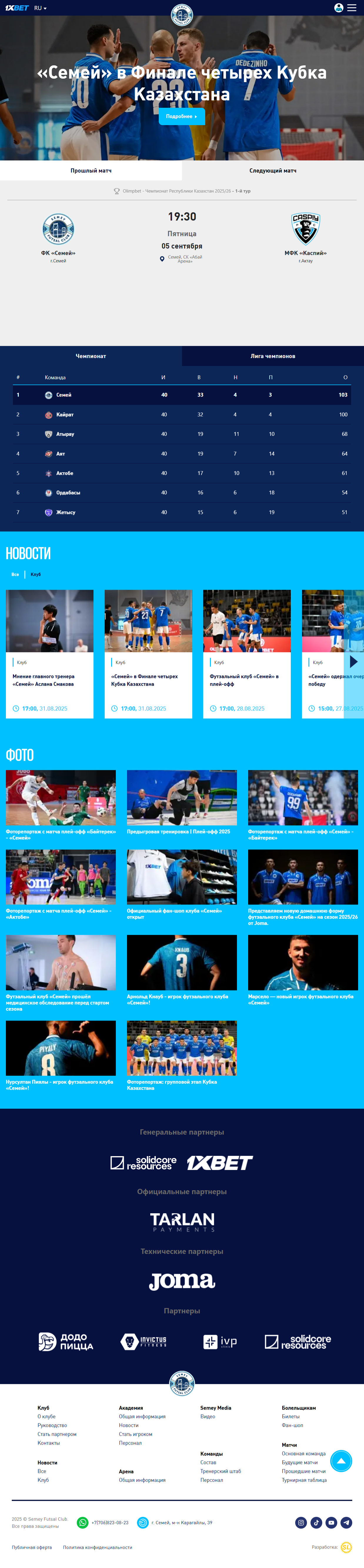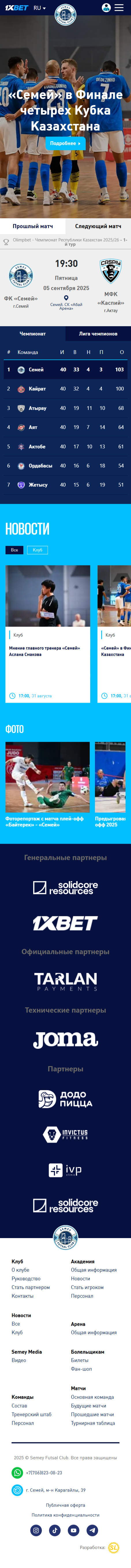 Разработан корпоративный сайт для футзального клуба "Semey"