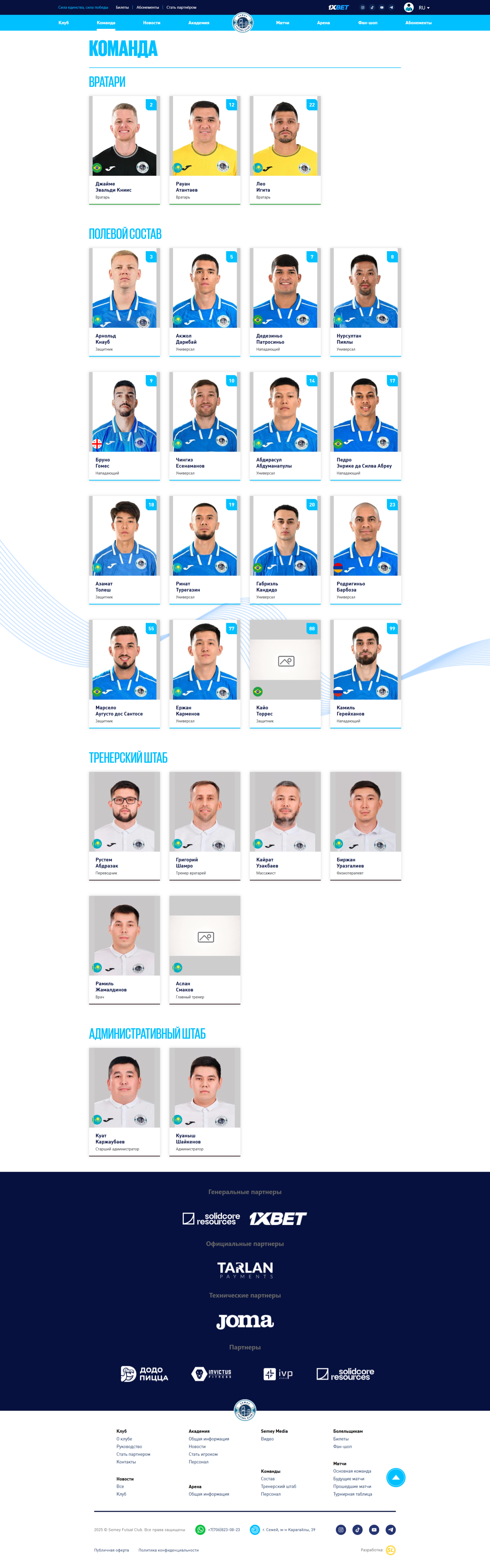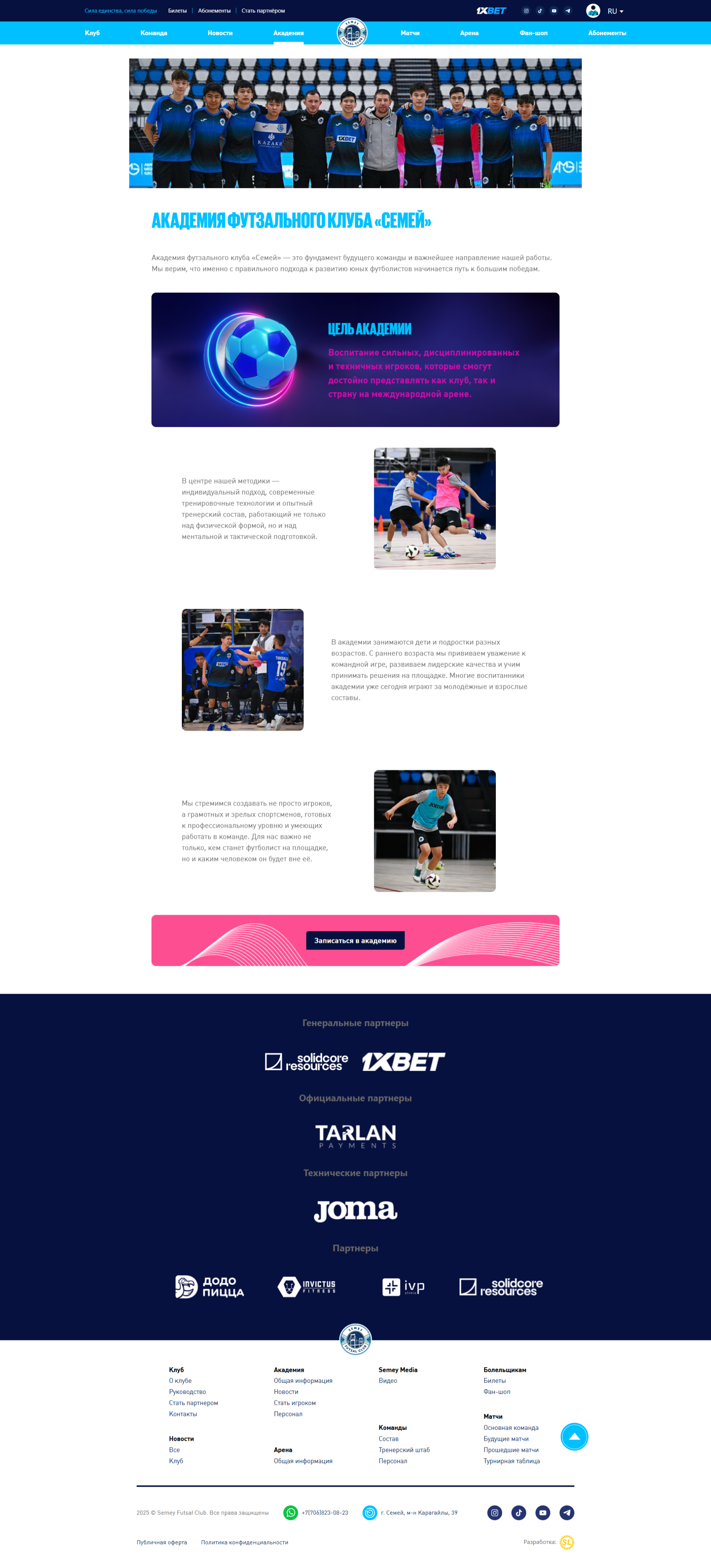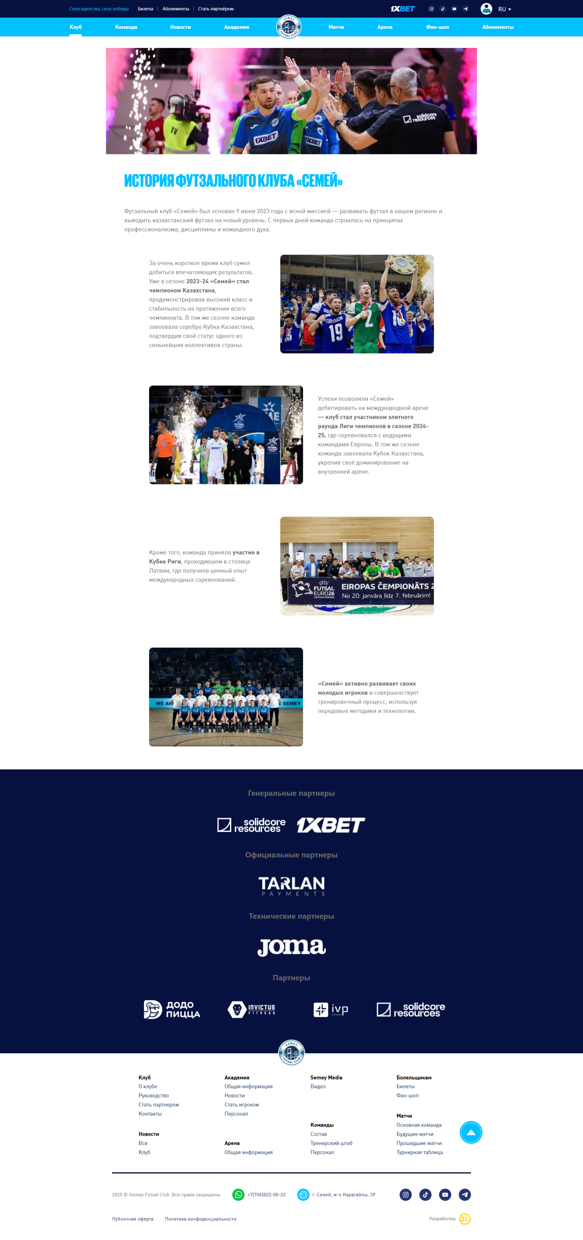 Разработан корпоративный сайт для футзального клуба "Semey"